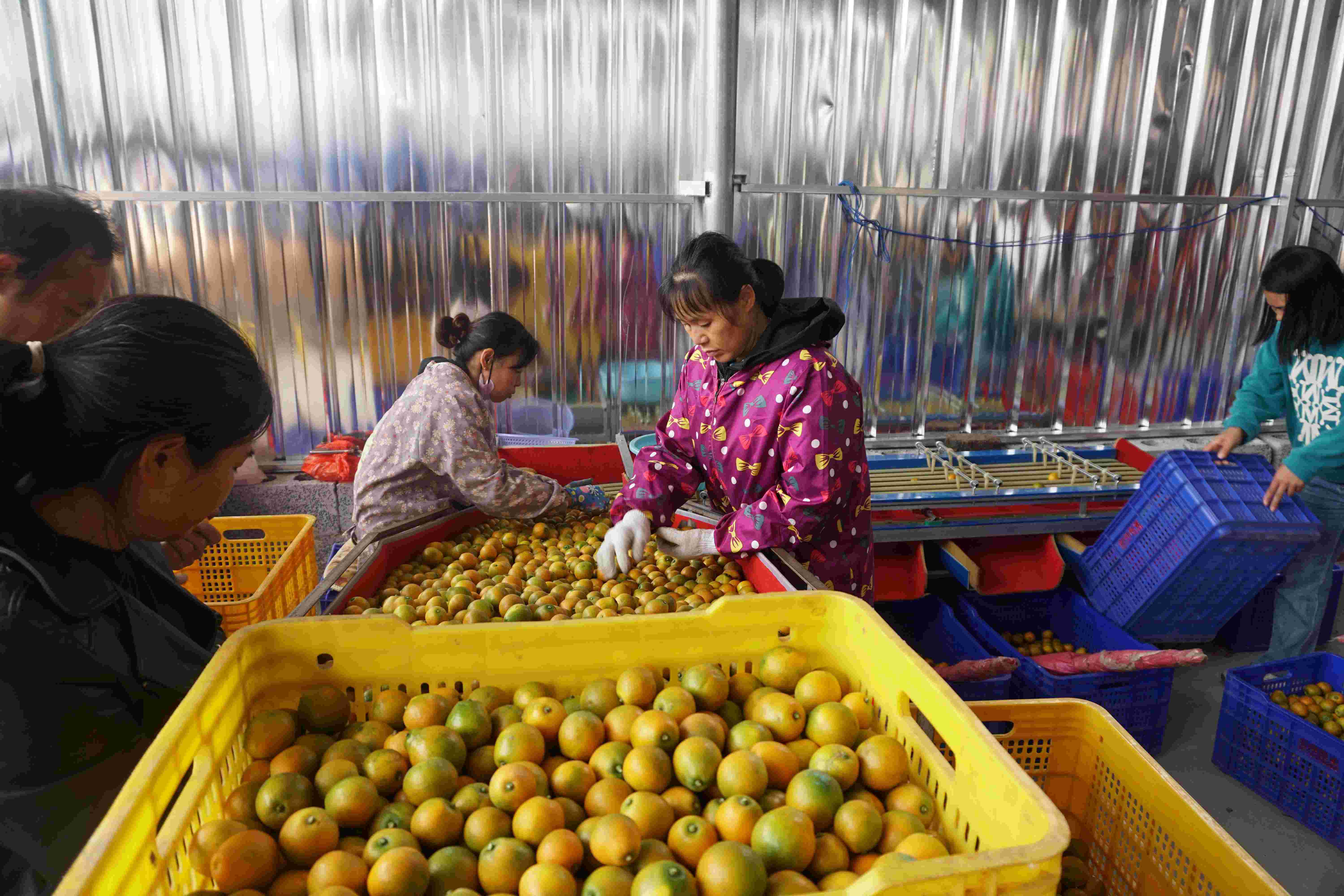 工人们将采摘的脆蜜金桔进行分级筛选打包。潘世兴 摄