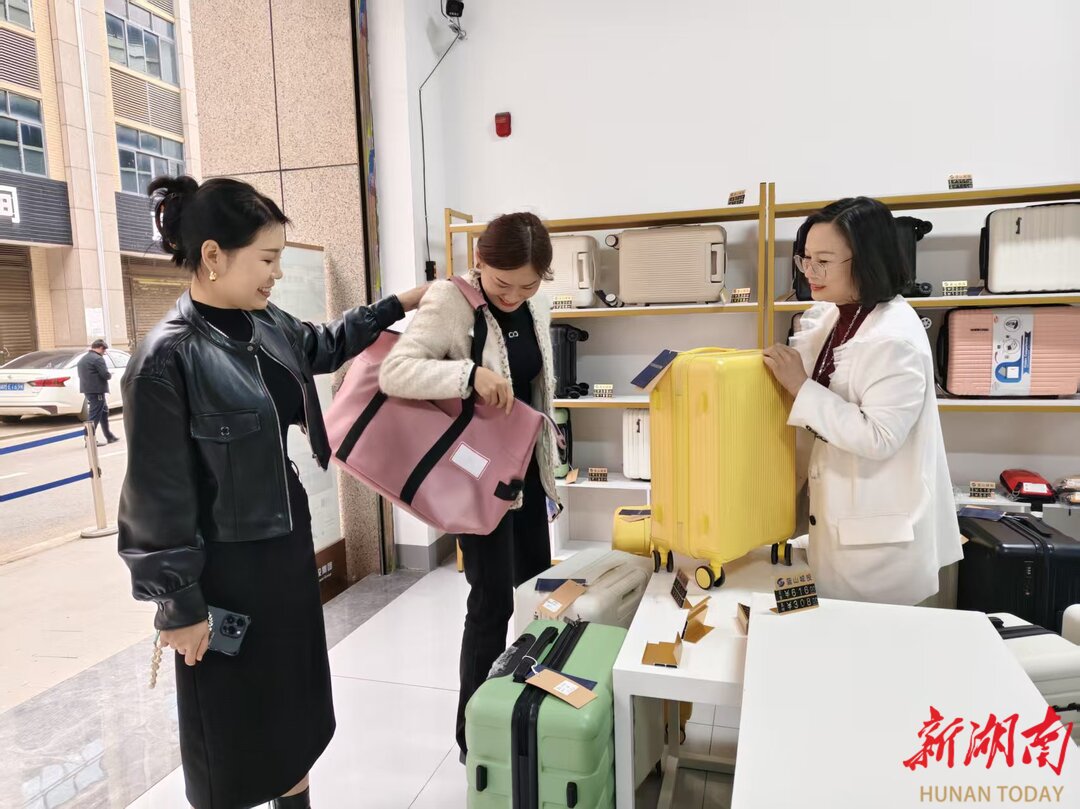 蓝山县湘江源皮具箱包特色街负责人胡斌介绍,该特色街由城投公司统一打造、统一装修、统一运营,针对入驻企业,城投公司全程提供皮具箱包代推广、代销售服务,商铺工作人员均由城投公司统一调度安排,全程代运营,企业无需额外操心,仅需负责供货即可。