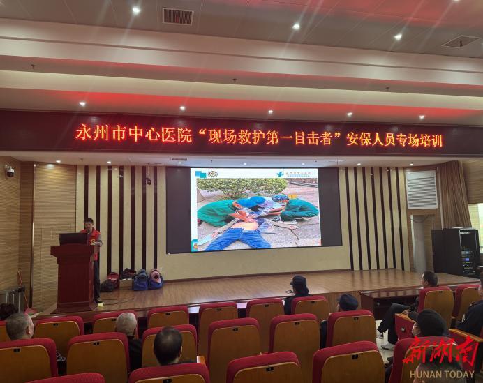 湖南日报·新湖南客户端12月1日讯(通讯员 黄文翠)11月25日,永州市中心医院专门为院内安保人员举办了“现场救护第一目击者”急救技能培训。作为医院24小时值守各区域的重要力量,安保人员往往是突发医疗事件的第一发现者,提升其应急救护能力至关重要。