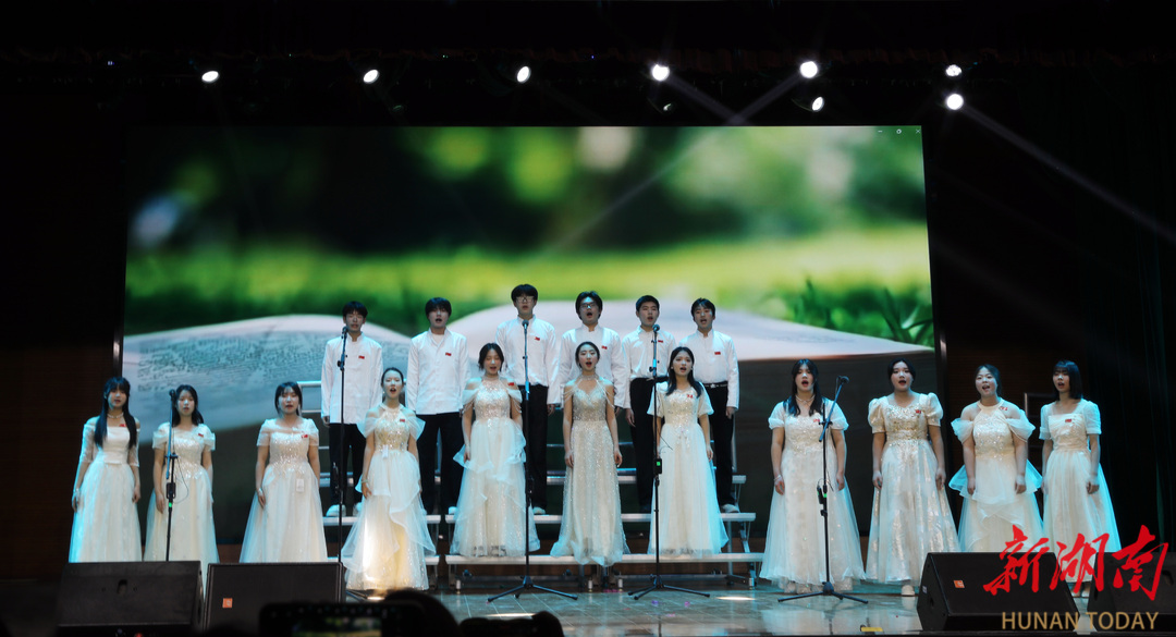 活动现场,气氛热烈非凡,掌声、欢呼声此起彼伏。随着合奏《这里是神奇的赛尔号》活力奏响,欢快的旋律点燃全场热情,活动正式拉开帷幕。随后,《光亮》《七月的草原》《承百年文脉,担时代新章》《走,去永州》等14个精彩节目轮番登台、各展风采,涵盖合唱、器乐、朗诵、歌舞、表演剧等多种形式,全方位展现了学子们的艺术才华与青春风貌。