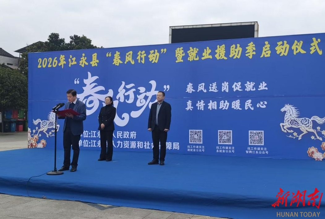 湖南日报·新湖南客户端2月4日讯(通讯员 汤传念 袁振涛)立春启新程,就业暖民心。2月4日上午,江永县2026年“春风行动”暨就业援助季启动仪式在县知青广场举行,县人民政府副县长朱国华出席仪式并宣布活动启动。