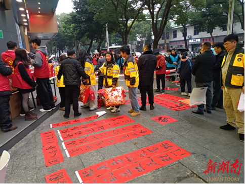 活动中,书法家们为“饿了么”“京东秒送”“美团”等新业态组织的一线员工,现场书写并赠送春联300余副、“福”字150余个,让常年穿梭在城市街巷的劳动者们,在忙碌之余感受到浓浓的年味儿和党组织的关怀。