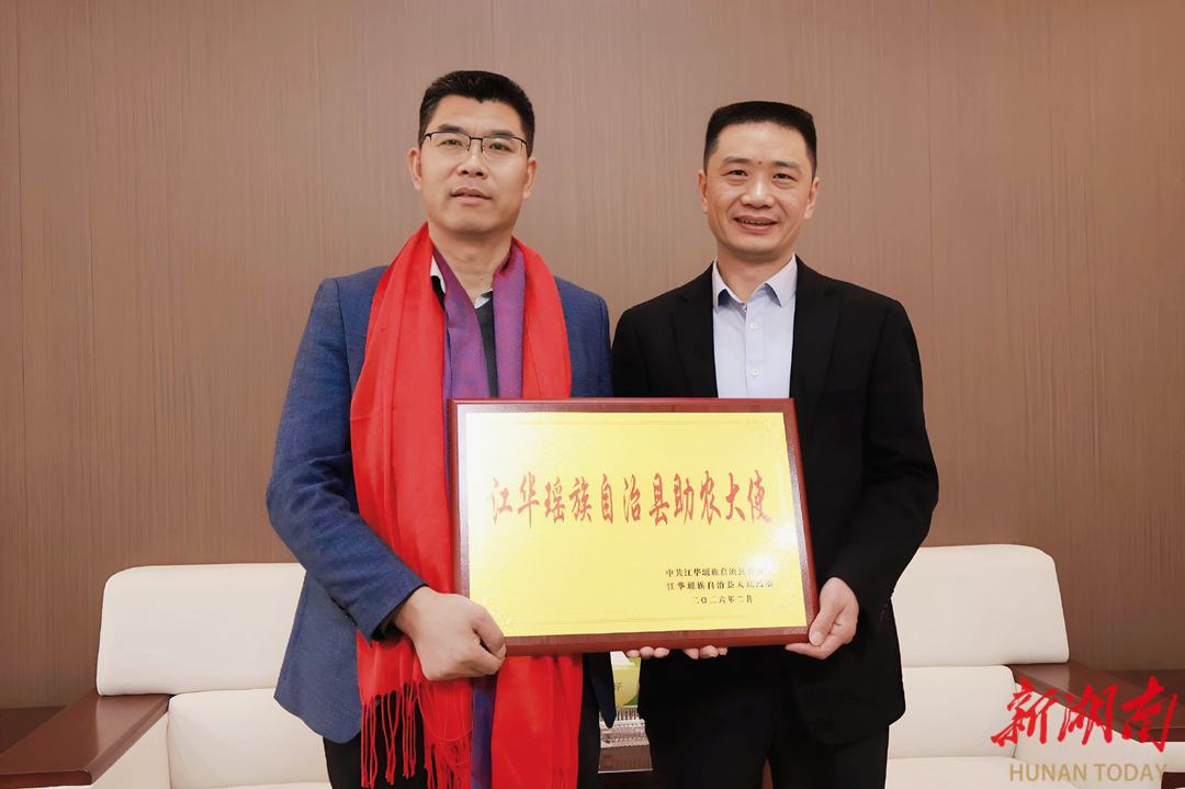 湖南日报·新湖南客户端2月6日讯(通讯员 王辉)2月5日,江华县委书记袁章中会见苏州桥酒酒业有限公司董事长封全昌一行,并为他颁发“助农大使”聘书。江华县委副书记、县委统战部部长冯志多参加。