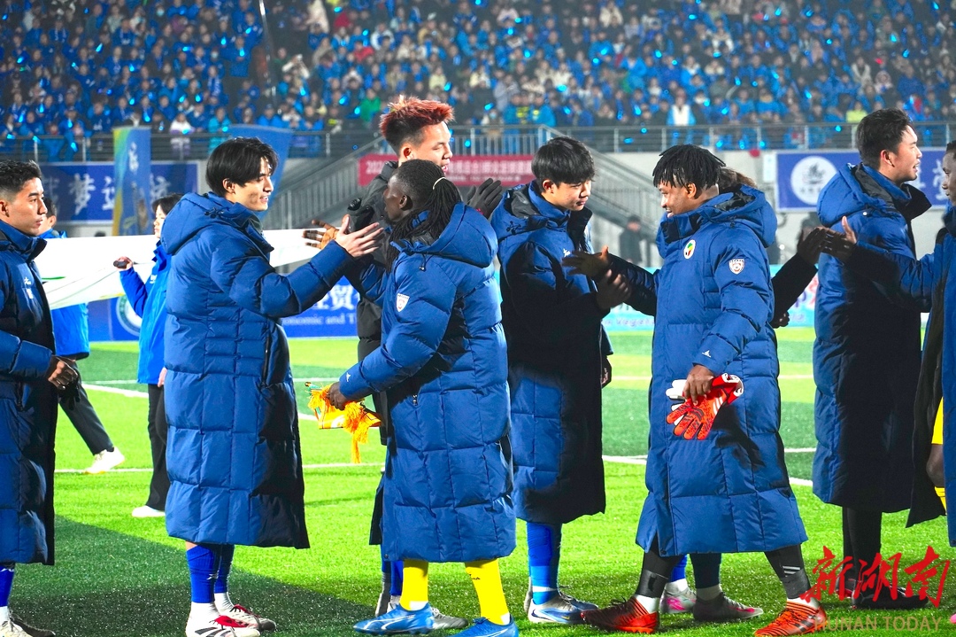 友谊长存,共迎新春!2月12日晚,永非经贸交流足球友谊赛于永州市体育场正式开赛。(湖南日报·新湖南客户端记者 郭利)