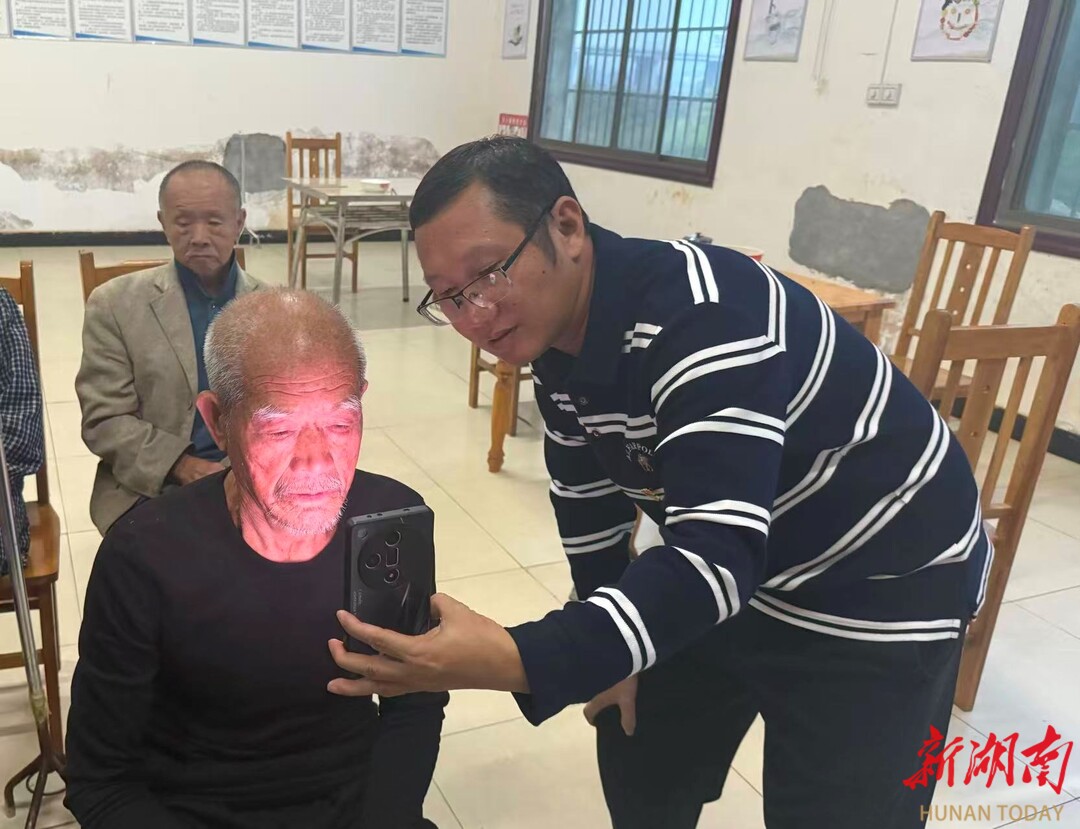 “年纪大了不会用手机,你们上门帮我认证,心里就踏实了。”在枧头镇养老院,工作人员正为行动不便的老人办理资格认证。