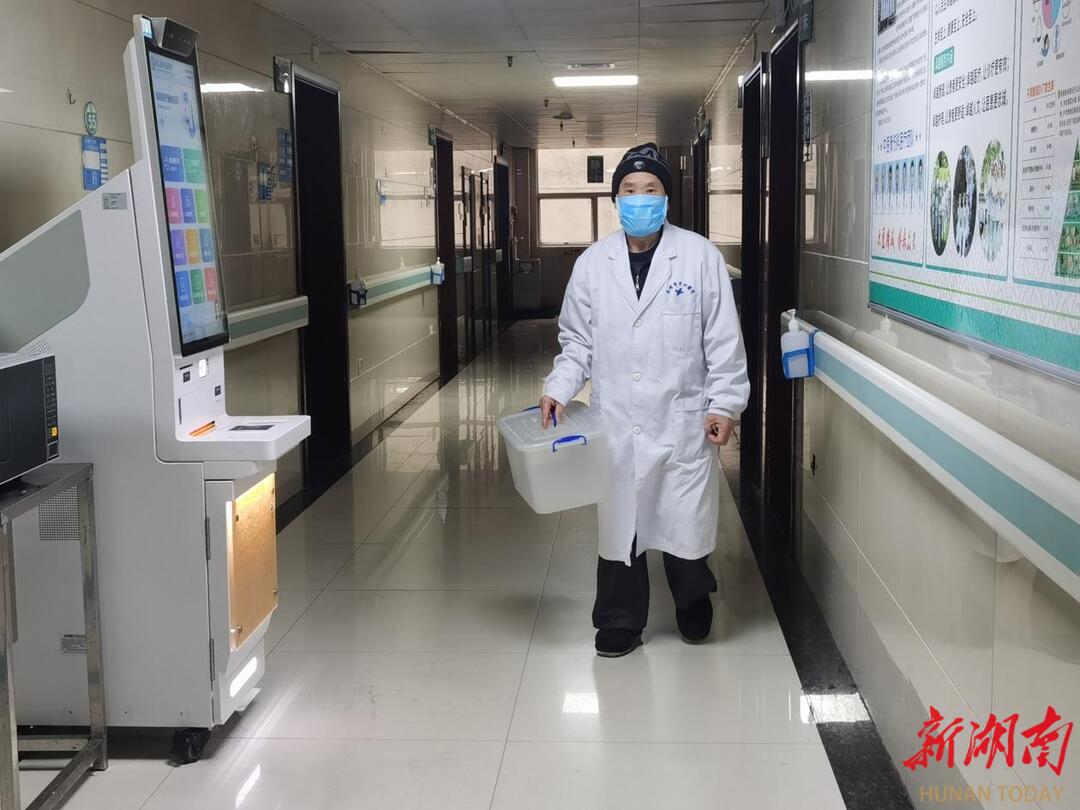 春节期间,姚卓安始终坚守岗位,为各科室运送检验标本