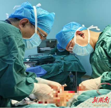 蓝山县中心医院党委委员、副院长王春晖在除夕日为患者做手术